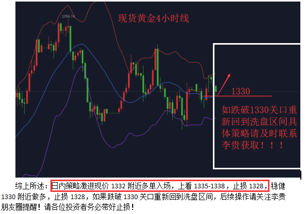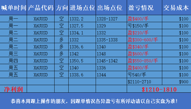 各位投资者朋友大家早上好,新的一周开始无论你上周成绩如何都已成为过去,相信周末两天时间大家已经调整好了自己的身心与状态,已经做好准备以最佳的状态来迎接本周的交易,相信本周李贵仍将继续努力给大家提供更多更准确的做单机会,希望大家及时把握。 上周行情回顾:上周五天四阳一阴,周一二黄金小幅上扬,探底1326之后