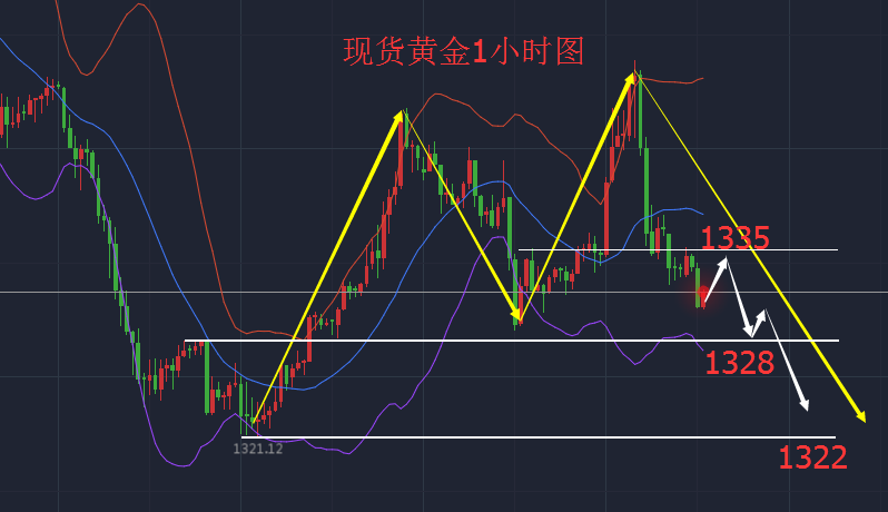 亚盘行情回顾:行情正如李贵所言,周一的行情都是比较平淡的,亚盘时段金价整体波动4美金左右,上周收盘在1333.10附近,今日早间在1333.60附近开盘随后开始一路下跌,最低到达1329.60附近后反弹到1333.40再次开始下跌,目前位于1332附近。 上周操作回顾:上周三四五三天时间无一损单,周三的先多后空多空双杀,周四的全程空