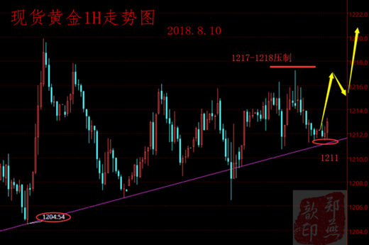 郑燕歆:2018.8.8黄金晚间操作建议 重点关注1215和1205破位情况 周三(8月8日)欧洲时段,黄金继续挣扎于17个月低位附近,未见明显的复苏迹象。 黄金继续在过去一周以来更广泛的交易区间上下波动。对于美联储继续逐步加息的预期仍制约着无固定收益的黄金的上行。同时,之前升至1216 美元 区域的涨势迅速消散,以美元计价的黄金还同时承压于美元的反弹。美元源自于获利抛售的下滑在周三暂停,并随后寻得部分支撑。 美国对伊朗制裁的政策动态促成了部分避险天堂的需求,造成欧洲股市表现出负面的交易情绪,这可能会防止黄金的跌幅加深。由于当日没有对市场影响重大的美国经济数据公布,投资者正静候明
