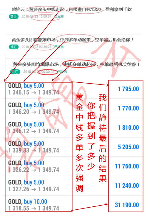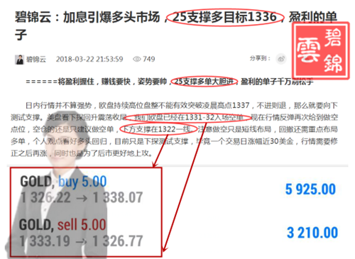 单,我不怕喊错,因为我有把握去盈利,别问我为什么这么自信,有实力就是任性。 黄金多单成功止盈,如果你还在迟疑,那么你还将是不断的亏损,黄金市场就是如此,永远都有人会比你快一步。锦云文章策略全网可见,实力就等你来验证。 昨天晚间操作锦云多次提醒要进多单,锦云相信很多人都在迟疑,甚至在1326附近进了空单,怎
