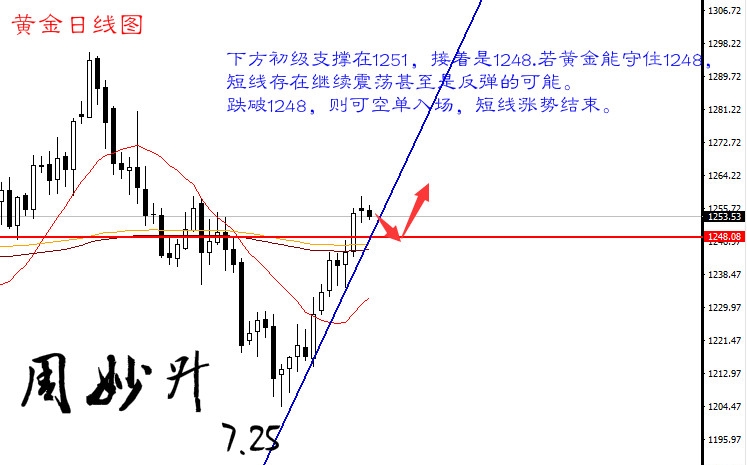 赢在心态,死在脾气,交易的精彩在于经历,经历是一种思想的提高,是一种水平的提炼。没有人会因为永久开放而喜欢假花,更珍惜真花的花开与凋谢,投资,本身就是对另一种未知领域的探索,需要不断的自我纠错,这更是人性的检测台,无论涨跌态度有时候比方法更重要。 【黄金】 昨日就提到若黄金能守住1248,短线存在继续震荡