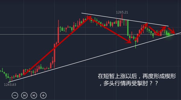 黄金在上周末突破1270以后,回落调整,并在1266点附近寻找到双重支撑,这给了多头以信心,但或许,这只是最后的狂欢,积累半个多月的涨幅以来,黄金上涨斜率有变小之势,上行通道下移,这是多头信心不足的体现。参看黄金4小时图。 一小时图上,1266点的支撑很强势,再次给多头以信心,能否突破前高甚至攻上1280需要打上问号