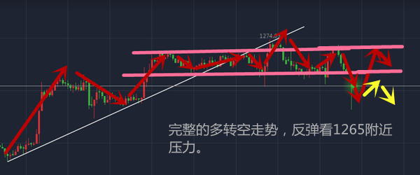 今天是个吉利的日子,祝各位投资者朋友做单顺意,单单大发。 黄金自1254点反弹以来,一直处于较为弱势的震荡状态,在本周消息面略微清淡的情况下,黄金或许难有起色,本周的多空双方不再像之前那样为更高的位置而激烈争夺,如今这种情况下,窄幅盘整震荡,成交量低,多头无力上攻而带动更多的多头情绪来解套。反倒是空头在气