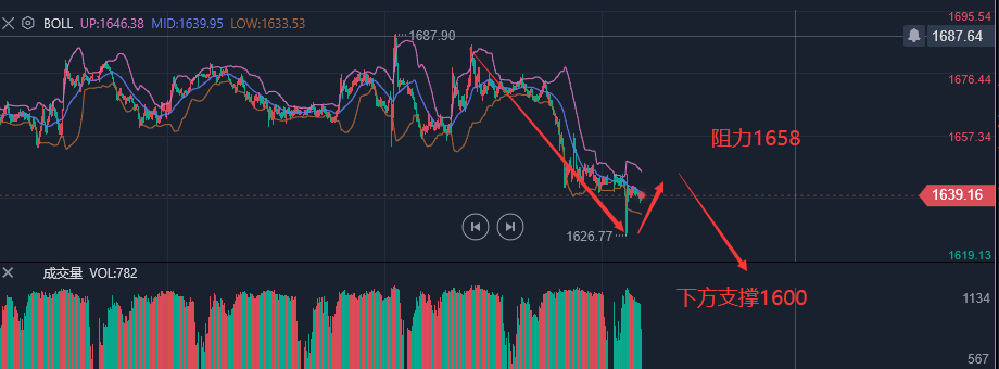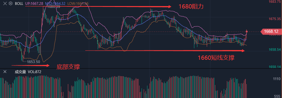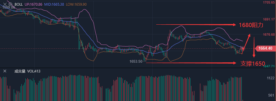 消息面: 美联储将于北京时间9月22日周四凌晨2点结束9月FOMC会议并发布书面声明,半小时后鲍威尔主席将举行新闻发布会。市场普遍预期美联储将上调“联邦基金利率”75个基点。芝加哥商品交易所(CME)的美联储观察工具预测, 美联储加息75个基点的概率为84%,加息1个百分点的概率为16% 。 如果美联储将基准利率上调1%,这一不太可能发生的情况肯定会迫使金价下跌 。据MarketWatch报道:“野村证券的经济学家成为华尔街第一个预测美联储基准短期利率将上调整整一个百分点的人。” 黄金走势分析: 昨日 国际黄金依旧是较为熟悉的节奏,行情集中在欧盘延续空头节奏发力,整体维持在周初1660-80