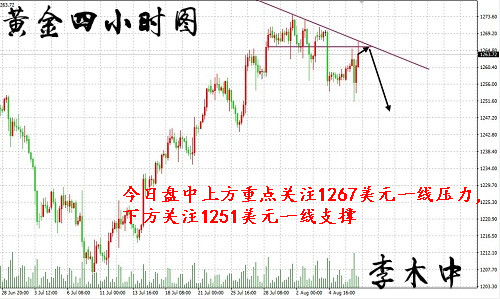 黄金早间行情分析: 今天周五(8月11日),周线收官已定,并且还有望挑战新高1294附近;多头已经上破1280一线,日线0.382的阻力位没有挡住黄金的多头发力;目前看来,黄金还是会有一波回调修复,回调之后怎么选择?木中个人看好继续上冲,当然要关注1280一线是否完全跌破。昨天的高点在1287.5,也是日线布林带上轨的支撑位