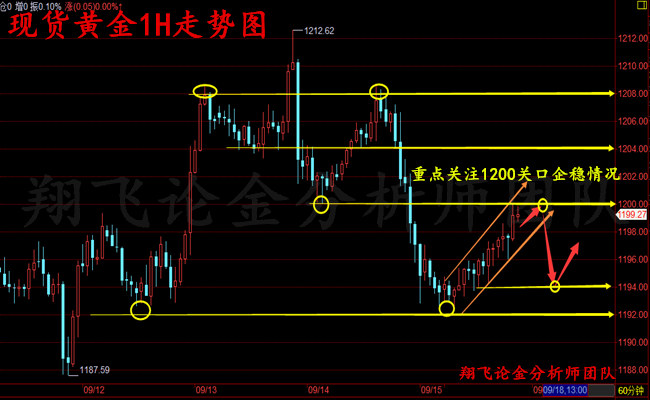 翔飞论金:9.19加息临近 黄金持续震荡如何操作 ——前言—— 静心观水流,冷眼看世态!大家好,我是翔飞论金! 今天是周三9月19号,距离今年第三次美联储加息只剩8天,目前金价依旧处于日线级别震荡之中。 ——消息面解读—— 贸易恐慌情绪消退金价再受支撑,ETF减持却令后市前景更看衰; 现货黄金价格本周以来围绕1200美元关口几度浮沉,周二欧洲时段,在中国方面针对美国贸易战措施给出的报复性回应力度仍相对有限的消息背景下,现货黄金价格自日低反弹,触及1203美元/盎司的高点,但之后却再度失去上攻动能,总体走势依旧疲弱; 翔飞认为,虽然风险情绪暂时好转,但是压制金价上行的基本面负面因素,如美联储加