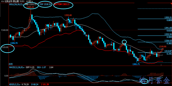 国际黄金周四(5月3日)亚市早盘开于1304.17美元/盎司后即录得日内低点1304.17美元/盎司,然后金价转涨,震荡上行。欧市金价转入盘整,多空胶着,之后多头略胜。美市多头突然发力,金价一柱擎天,录得日内高点1318.06美元/盎司后转跌,金价震荡下行,之后再转盘整,终收于1313.62美元/盎司。 国际黄金周四(5月3日)在逢低买