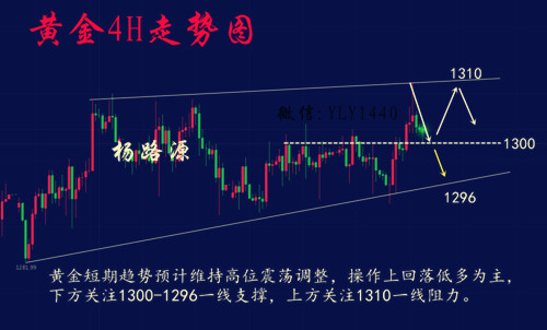 上午好,相信昨晚的加息之夜想必很多投资朋友都是跟自己的老师一起双双盯盘一同度过,大多数负责任的老师在大的行情面前一定会跟你保持良好的沟通和精确的布局。当然“授人以鱼,不如授人以渔”。在老师给你相应的操作策略同时,你有没有问这其中包含的投资知识,消息面上的分析乃至技术面上的操盘技巧呢?路源时常会以朋友的身份和投资朋友相处,很乐意跟他们在操作中分享关于黄金的知识。 黄金行情回顾及走势预测: 黄金周四(6月14日)亚市早盘开于1299.70美元后金价跳水,大幅下挫,录得日内低点1296.98美元后强势反弹。欧市金价转盘跌后,多头再次上攻,金价震荡上行。美市多头暴拉,录得日