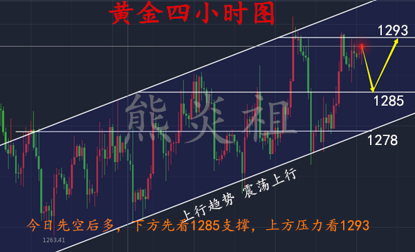 熊炎祖:黄金早盘跳空低开,反抽1280空可双向盈利 早上好,新的一周又开始了,在上周的投资中不管你是盈利还是亏损,都以是过去试,迎接你的是新的一天,大家调整心态开始新的挑战。悠悠乱市,清者自清,浊者自浊。一个投资者经过市场长期的洗礼于磨练之后才能逐渐强大起来,而这种强大将是持续且循序渐进的,这种强大是踏上