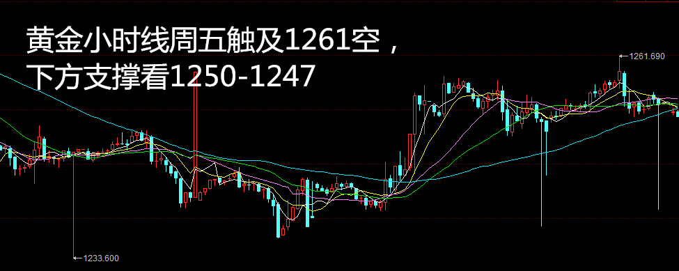 黄金周一行情解析 黄金,上周黄金价格终于结束三周连跌的局势周线收阳,上周中黄金下探触及1236附近低点之后回升,加之鸽派加息的利好支撑,黄金价格直接站上1250美元关口,周四经过调整之后。周五黄金继续在区间内震荡整理,隔夜美盘中金价一度走高突破了1260关口最高触及1261.7美元/盎司;不过随后金价回落最终还是收于12