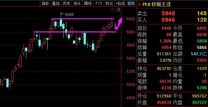 利剑无意:凌厉刚猛,无坚不摧,弱冠前以之与河朔群雄争锋。 软剑无常:三十岁前所用,误伤义士不祥,乃弃之深谷。 重剑无锋:大巧不工,四十岁前恃之横行天下。 木剑无滞:四十岁後,不滞於物,草木竹石均可为剑。 自此精修,渐进於无剑胜有剑之境。 愿以最简单的文字,作最精妙的行情分析。 棕榈2101—— 大周期2101合约多头趋势,上方暂无阻力,但棕榈主连6000关口乃是强压; 小周期小时图今天高开回落,四根K线三根收阴,唯一的一根阳线显得微不足道,而且收盘价呈逐渐降低的走势。 综合来看,棕榈虽然多头强势,但6000关口强压下,价格可能继续回落支撑。 沪银2012—— 大周期虽然多头趋势,但日线图再次