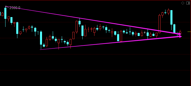 利剑无意:凌厉刚猛,无坚不摧,弱冠前以之与河朔群雄争锋。 软剑无常:三十岁前所用,误伤义士不祥,乃弃之深谷。 重剑无锋:大巧不工,四十岁前恃之横行天下。 木剑无滞:四十岁後,不滞於物,草木竹石均可为剑。 自此精修,渐进於无剑胜有剑之境。 愿以最简单的文字,作最精妙的行情分析。 焦炭2101—— 大周期日线图暴涨之后,今天不讲武德的暴跌,顶部收线有继续跌的趋势,而且MACD形成死叉,多肯定是不能多的; 小周期小时图虽然暴涨暴跌,但是价格刚好回踩突破之后的趋势线支撑,空显然也过于激进。 综合来看,焦炭整体有下行趋势,但短线依托2405-15区域支撑存在反弹,然后继续看回落,跌破2400将打开下行