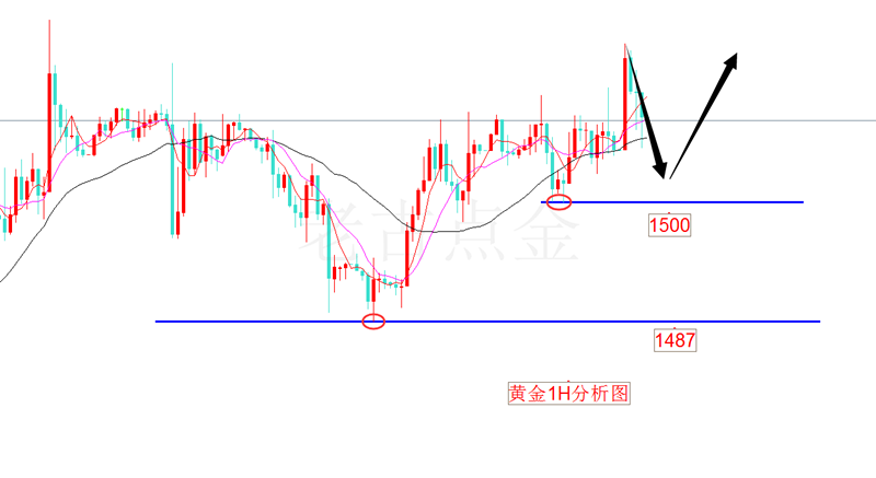 黄金早盘高开低走,但是依然未有效突破我们此前强调的1516的关键压力位置,当前围绕1496-1514区域内震荡,早盘黄金继续回补缺口,下探1496位置支撑! 上周公布的数据均未能达到市场预期,黄金避险上涨!但是在日线级别上,黄金承压于高点连线压力位置,1516压力位置下黄金存在日线波段回调的可能!黄金早盘虽然有再次上涨的可能,但是不破1516压力位置还是继续看早盘跳空缺口的回补! 黄金1小时级别还是处于上涨反弹过程中,当前暂时遇阻1516位置的压力,短线维持1496-1516区域内盘整震荡!早盘小反弹后可以直接空!下看目标1496一线!破位1496则可以进一步下看1485一线!否则还是按照1