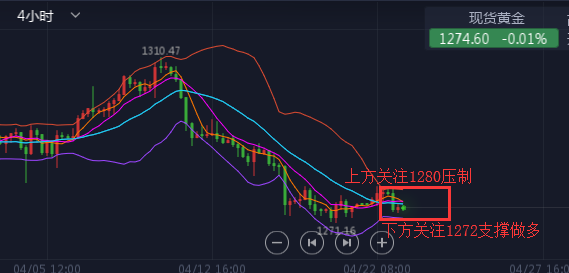 消息面解读: 本周将公布的最重要数据将是美国第一季度GDP数据,该报告定于本周五(4月26日)发布,分析人士将格外关注它对美国经济未来的影响。其他值得关注的数据包括美国企业财报和美国耐用品报告。 本周二英国议员们将在假期后返回伦敦,随后他们的决定对市场所产生的重大影响,可能在未来数月内逐步揭晓。事实是,对于英国退欧的担忧可能会帮助黄金价格重获提振。 中美贸易谈判持续传来好消息,如果事实如此,双方贸易关系的放松显然会不利于金价。随着这两方贸易战的停火,特朗普的政府表示将对欧盟加收关税。新的贸易冲突呼之欲出,而这也势必影响金价。 国际黄金行情走势分析: 黄金从日线上来看,震荡下跌,金价在1270