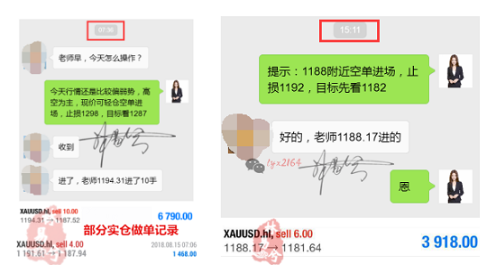 林易兮:8.20黄金探底回升,反弹有望看高1200! 授之以鱼,不如授之以渔。上午好,我依然是低调但有实力带你赚钱的林易兮。对于市场突变的行情是我们管不了的,就像在生活中,有一些事是无法避免的,总是生不由己。对于这些我们能够做的只有顺从,对于突然的行情是我们无法预知的,我们能做的就是做单上需要严格进行止损,保持平常心去对待,不要恶意的去扛单,摆脱侥幸的心理。行情突变不可怕,可怕的是你不作出反应,一味等待,最后错过了挽回损失的最佳时机,也错过了顺势而盈的机会。 ==工欲善其事,必先利其器! 本周共操作17单,盈利88点,亏损6点,准确率达93%,共赚319099美金,折合人民币约216万元。本