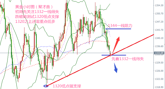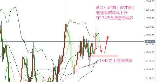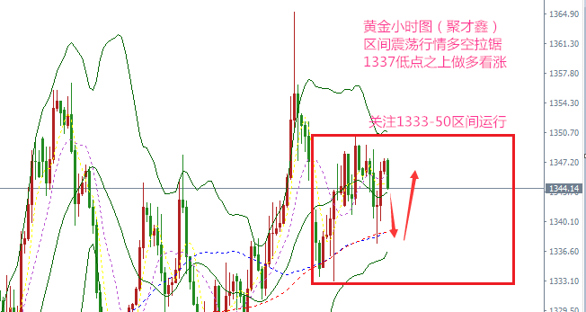 国际资讯解析: 周五(4月20日)亚盘,金价震荡微跌,延续隔夜走势,目前交投在1340支撑上方,势将录得3周来首次周线下跌。关于国际金价后市走势,聚才鑫认为,从技术面来看,现货金料将在1354美元下方盘旋。截至北京时间15:00,现货金下跌1.46美元或0.11%,报1344美元每盎司; 黄金分析及建议: 黄金:日线阴阳循环还是震荡