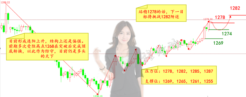 张势:世上安得两全法 圣诞节的休市完全没有影响到黄金的暴力多头拉升,自1236筑底成功触底反弹以来,近期绮涵一直强调的一切的回踩都是做多的机会!但任何事情,物极必反!所以还是严格的做好风控,确保万无一失! 定势:上周全胜,年关将至一起过个肥年 上周周一和周五波幅10美金,其他三个交易日波幅每天4-5美金行情,幅