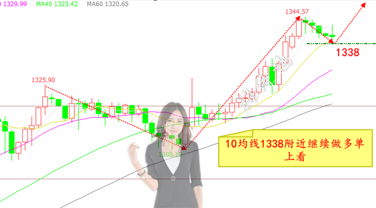 自2017年12月国际黄金价格走出漂亮的V字反弹,并以年度12.7%的涨幅收官。上周国际黄金价格再度大幅攀升,自最低1308美元/盎司升至1339美元/盎司,并录得连续第五周涨幅。今早1339附近果断多单进场中午时分,到达目标点位1345,本周开门红,这一路的暴涨行情,一月之内涨幅超100美金,一波行情100美金已经到了风险区域,如果