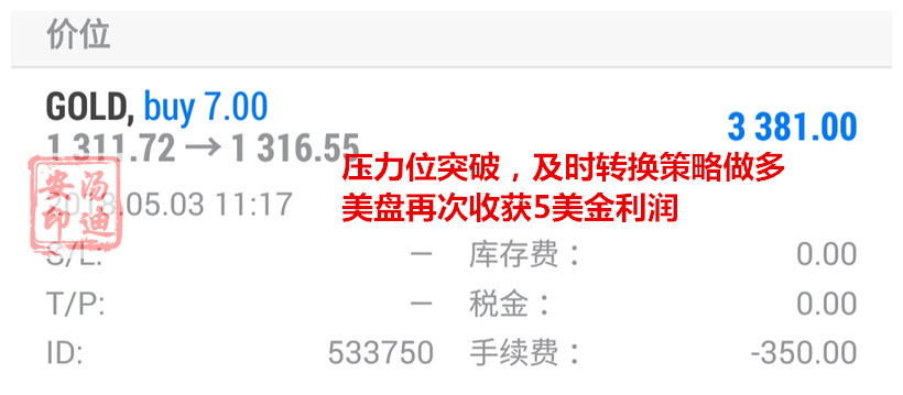 汤迪安:5.3黄金空单收割屡试不爽,今日反弹继续空! 人生最怕的不是过程,而是开始和坚持。决定干一件事,光说不练,永远没有开始,坚持不住,永远看不到结果。所以,能否学好这东西,关键还在于开始和坚持。不要羡慕别人的能力。别人也是通过勤奋和时间厚度,慢慢积累的效果。 消息面解析: 周四(5月3日)凌晨02:00,美联