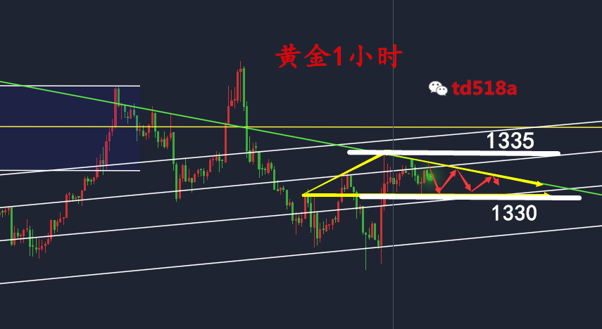 汤迪安:4.9黄金多头压制重重,1335压制高空为先! 周评中强调的几个关键词,阴阳循环,多空不延续,震荡。都衬托了一点,不能因上周五非农价格上涨我们就形成了继续看涨的思维。一个非农数据想扭转维持了3个多月的整体震荡大市,难度较大! 加上美元有再次反弹靠近90.50-91区域的迹象,以及大周期美元有筑底形态,我们不得