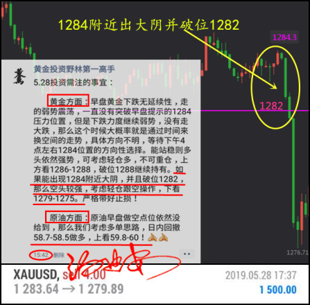 汤迪安:5.30周三黄金原油空单大胜20个点,你的亏损靠谁来挽回? 前言: 黄金原油投资野林第一高手——汤迪安,得此“成功”名号,众望所归,吾受之无愧!这里的第一高手不指其他,只专指5高,即“高素质,高精准,高效率,高收益,高科学”!凡世上众人,投资交易达到此5高,便称得上第一,从此无利可跑!无贫之谈! 人生自古谁无死,留取丹心照汗青!人总要努力去做对社会有意义的事。深陷投资泥淖中的人儿,正在日夜寻找光明大道,可找汤迪安老师,为你指点科学投资人生! 》》周三市场交易总结:昨天是个丰收的好日子,无论是黄金还是原油走势都基本符合我们的思路。 黄金方面:早间承接昨日横盘低点1279一