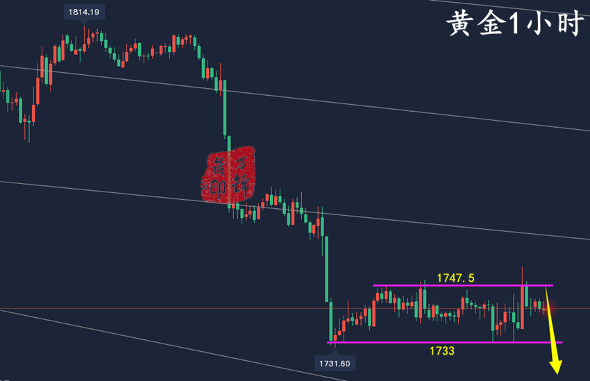 每天盯盘,周末休息难得可以放下手机安心休息,好好享受轻松时刻。夏日阳光刺眼,但是心里却很开阔,喜欢这阳光明媚的感觉,心情也会变的愉悦;阴雨绵绵的天气到处湿漉漉,夹杂着夏日的热浪,黏糊糊的感觉让人很难受。情绪最容易受外界影响,这也是锦晟一直强调心态方面的原因,一个成熟的投资者,交易不应该被情绪左右,处乱不惊脚踏实地,操作也会越来越顺!——万锦晟 黄金方面 黄金上周弱势破位大跌,最低到达1731一线,周线大阴。日线三连阴空头放量,周尾震荡收盘,连收两根十字K。一般来说底部十字K看反转,但是就目前黄金而言,只能看空头修正,周五美盘单阳反弹,承压382压力位1747.5,仅仅只是影线刺破,凌晨回落弱