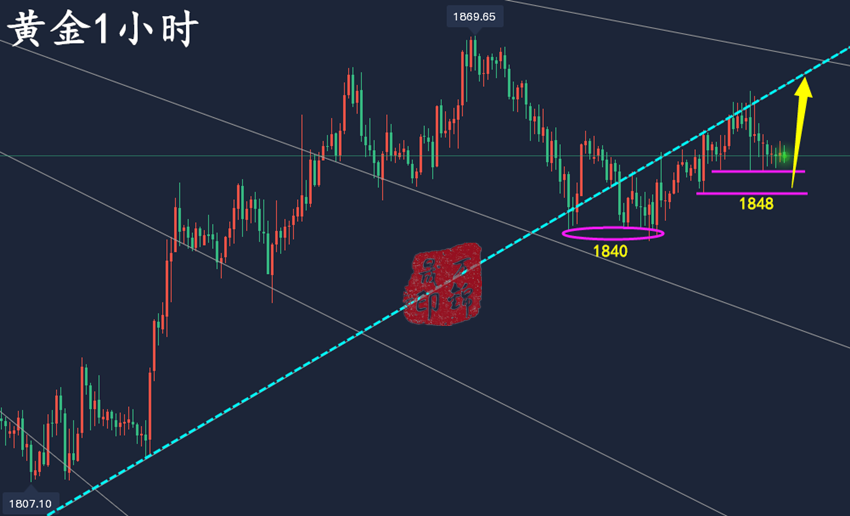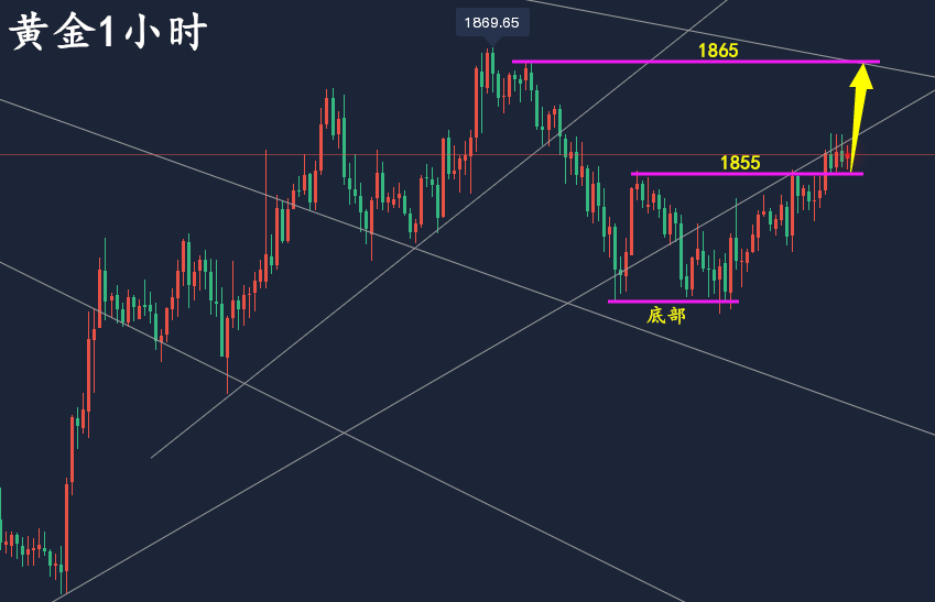 人生是一个不断取舍、不断超越的过程。学会接纳生命里的每一天,无论好与坏、悲与喜,坦然面对世间的千变万化。让自己在岁月的洗礼中,变得温柔而强大。有句话说得好:“水的清澈,不是因为它不含杂质,而是在于它懂得沉淀。”沉淀自己,是一种生活态度,也是人生最好的升华!——万锦晟 黄金方面 黄金昨日波幅不大,晚间围绕前一日低点1842横盘,凌晨冲高日线收小阴十字。整体来看日线连阳单阴看修正,行情抗跌,上升容易,短线还是偏反弹多。今日早间开盘小幅回落大阳拉升,欧盘连阳站上1856,我们1853多单已减仓止盈,剩余设保本止损继续持有中。周线收官晚间黄金会延续上涨吗? 晚间重点关注618压力位1858.5,欧盘