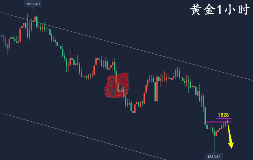 昨晚对很多人来说可能是不眠之夜,有些人称之为“黑色星期四”,大宗市场、股市、黄金大跌,虚拟货币跌的更是惨不忍睹,除了原油一骑绝尘,其余都在跌。我们经常说趋势很重要,顺势容易,逆势艰难,不要不信,被市场教训多了就明白其中的含义。市场从来不缺机会,只是缺少发现机会的人,谋定而后动,每一个成功者背后都有一个军师指点,你的军师在哪里呢?——万锦晟 黄金方面 黄金单阳修正后,昨日再度大阴下跌,欧美盘弱势下行,凌晨在美储主席鲍威尔讲话前破位大跌失守1830,到达1820一线低位收盘,日线呈吞噬性实体大阴K,这种形态下今日黄金还是空。另外,凌晨美储主席鲍威尔讲话表示,必须严格控制通胀,或将采取更多措施,即
