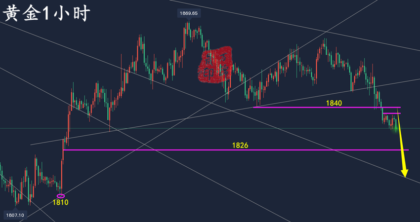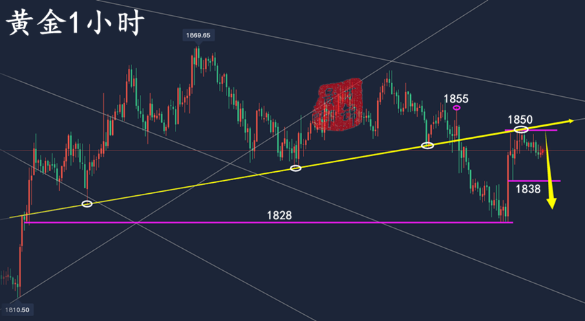 很多时候放弃很简单,坚持很难,中途如果看不到成绩,就会匆忙放弃。但是只有熬过成长路上的低谷期,才能有想要的突破和成长。任何一份微小的努力,只要坚持365天,都会带来质的飞跃。有时,不是因为看见了成功才坚持,是只有坚持才会看见成功!——万锦晟 黄金方面 黄金连续几日的震荡,昨日迎来破位下跌,日线大阴破低1840。整体来看黄金这一波反弹只是空头趋势下的修正,压制在382位置下延续跌势。一般来说,凌晨的行情在第二日走延续的概率很大,凌晨破位下跌日线指标交死叉下行,今日延续看空即可。 早间在1832一线支撑下,黄金低位横盘4小时图上连收两根十字K,反弹幅度有限,午后还需空。激进在1837—1838直