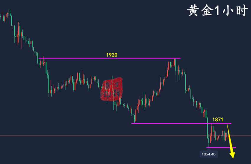 很多人问老师五一休几天?行情不停歇锦晟不休假,五一这段时间国际黄金不停盘,最近行情也不错,单边下跌的走势,这样的行情不常有,可遇而不可求。如果你平时上班没有时间,趁五一假期好好做一下,拿到一些利润还是不错的。同时也能好好陪伴家人,不比你外出旅游更香吗?疫情虽然影响,关键还是看你以什么心态面对,调整自己重新规划就是另一番风景!——万锦晟 黄金方面 黄金昨日极弱下跌无反抽,美盘连阴破低触及1854一线,日线大阴收盘。在周末的分析中锦晟强调过,周四美储加息落地之前都是看空,周一从1900跌至1854低点,跌幅达46美金。当前黄金虽然是单边空头行情,但是已经临近尾声,在周一加速下跌之后,今日跌幅有限