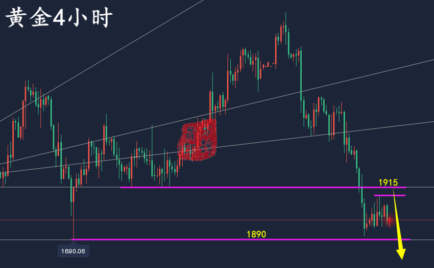 有句话说得好:“如果你不给自己烦恼,别人就永远不可能给你烦恼。”人生难免要面对各种烦恼,若一直耿耿于怀,只会让自己难受。何不把往事清零,学会轻装前行。放下烦恼,才能腾出手来,做好眼前的事,拥抱当下的幸福,未来也会有所期待——万锦晟 黄金方面 黄金空头极弱日线连阴大跌,昨日再度大阴收盘,破1915支撑,刺破千九整数关口,下探1890前低支撑,凌晨低位震荡收盘,没有出现较大力度的反弹。整体来看当前黄金单边下跌行情,还没有出现止跌信号,美联储加息预期升温,黄金或将还有进一步下跌,目前还不能看抄底。 五月五号是美联储议息会议,买预期卖事实,在美储会议之前黄金大概率都是跌势,消息真正落地后看反弹,因此