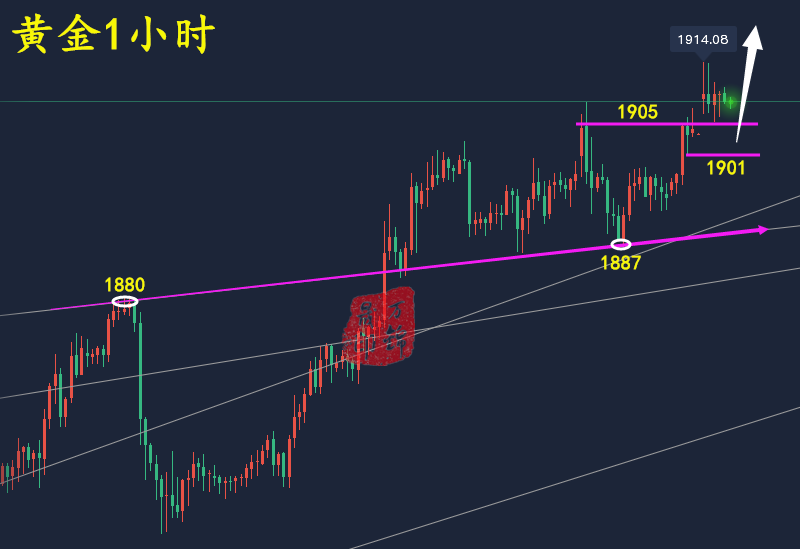 有人不愿意面对风险,因为风险意味着恐惧和失败;但风险里往往又藏着胜算的把握,处理好风险,才能把握住胜利。敢于正视风险的人,会把事情一细再细,让所有难题暴露在表面,然后找到应对策略。只有前面把路铺好了,做好相应的规划,后面的路才会走得更顺畅!——万锦晟 晚间黄金 黄金今日走势和昨天类似,早间高开低走,一度触及1914一线。亚盘在千九之上高位横盘,欧盘前上探早间高点大阴转跌,下破1900关口,短线杀跌,建议不要追空。当前黄金整体走势依然保持多头行情,日内虽然出现一波较大幅度的回落,但是重点还是在美盘,这是近期黄金走势的特点。 对于美盘黄金而言,不要盲目的低位追空,多空延续性较差,当前黄金更多的是
