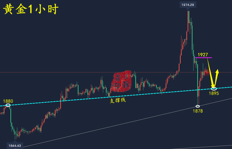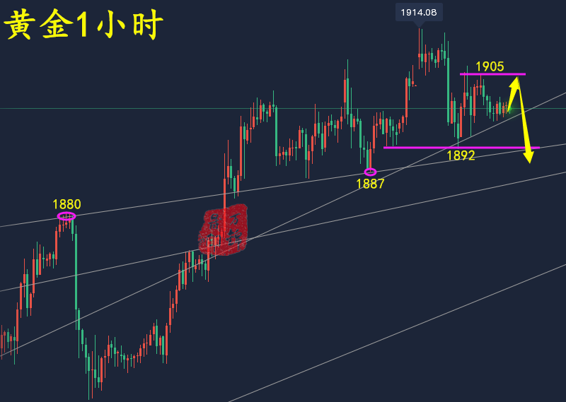 如果成功需要10000次努力,往往很多人在5000次之前,就已经早早放弃了。殊不知,做好一件事、一项工作很容易,难的是日复一日把要做的事情做完且做好。其实,真正的热爱一定不是逼自己去坚持和自律,而是自然而然地想要去将它做好。一个人就是在用心做好每一件事的过程中成熟和进步的!——万锦晟 黄金方面 黄金本周涨势放缓,近两日的走势反复洗盘,多空不延续。昨日早间高开冲击1914一线高位横盘,欧盘大阴回落走跌,回踩1892支撑,美盘反弹1907还是被压制,日线收阴。当前黄金承压前期日线高点1916滞涨,从趋势上来说虽然还是多头行情,但是要防止黄金出现回调修正,走一波探底回升的行情。 短周期上MACD指