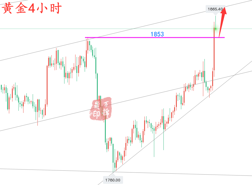 人生如棋,稳得住才能认知清晰,心态平和,赢取最后的胜利。相反,如果做事越是着急,脑子就越是混乱,容易把事情搞砸。正如俗话说的:“饭要一口一口吃,事要一件一件做。” 做事,切莫操之过急、冲动鲁莽,与其求快,不如求稳。因为,人生是一场马拉松,并非百米冲刺,行稳才能致远。别焦虑,把握好自己的节奏,做事一步一个脚印稳扎稳打,功到自然成—万锦晟 黄金方面 上周黄金整体保持上涨行情,日线连阳单阴,周五日内震荡抗跌,凌晨受乌克兰局势影响黄金强势暴涨,最高到达1865一线,小幅回落后高位收盘,日线大阳。本轮上涨突破日K趋势线压力,在日线上也形成连阳破高的格局,行情直接转多头,下周初延续看多即可。 周一黄金顺