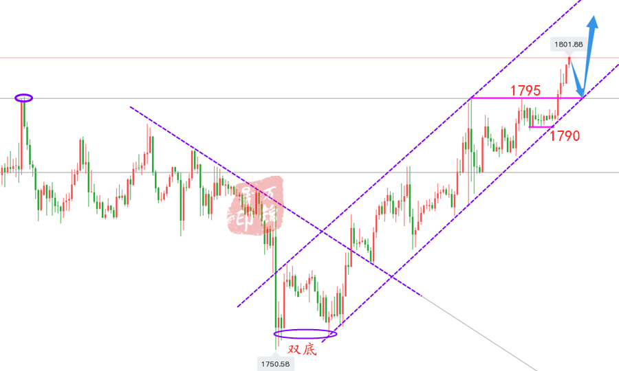 常常听人问起,生活的意义是什么?其实,我们平凡生活中的每一次体验、每一份付出、每一点收获,或是每一分感动,都是生活的意义。 生活得最有意义的人,不一定是年岁活得最长的人,而是对生活最有感受的人。认真过好平凡生活中的每一天,不辜负每一寸光阴,总有一束光会照亮你的每个春夏秋冬。与你共勉! 黄金昨日日内上涨但没有破高,美盘探底回升,收盘于1800之上,最终日线收阳,日线图上已是6连阳。正常来说这个时候应该是看多头,但是前面锦晟说过,日线倒锤线一般是见顶信号,紧接着昨日的上涨明显吃力,美盘持续被压制在日内高点1809下方,所以今日就是关键! 今日早间开盘即跌,下方支撑看前期回撤低点1790一线,这个