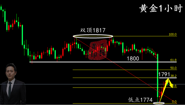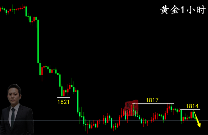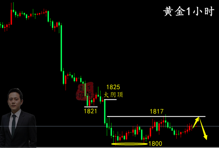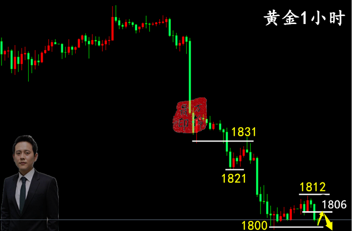 黄金破1850关键支撑位后,一泻千里,昨日极弱续跌,续跌成功后向下延升的时间最少在3-5个交易日。今天周三是破位之后的第二天,继续看空! 昨日大跌一度触及1800关口,但是凌晨没有反抽的力度,所以早间看续跌,也叫回补形态,和昨日类似!早间下跌我们还是需要关注午后空: 1、分水岭早间高点1812压力位,保持极弱下跌这个位置不能破。 2、欧盘破底,不仅仅是早间的底,还有昨日的底1800。 欧盘走出小时线连阴并且破底,美盘才会进一步延升下跌。在午后选择做空点的时候,反抽的力度不会过大,所以做空的位置在1806附近,触及1806附近做空,损1812,目标看1790—1788一线。实盘交易添加:WJS
