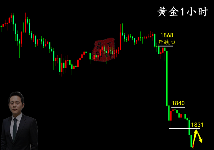 黄金昨日美盘在疫苗和美国一系列经济数据向好的情况下,黄金暴跌从1868到1830,狂泻38美金,下破关键支撑1850一线。之前锦晟就说过,同一个位置试探的越多,破位的概率就越大,所以也是意料之中的事。 对于今日黄金来说,前一日破位下跌,日线凌晨无反抽是极弱形态操作上继续空,早间空和欧盘前空!早间空:极弱行情看续跌,前一日大跌无大的反弹,早间直接空送钱的行情,锦晟实盘早间在1832直接跟进空单,1825止盈,顺利收获7美金! 如果你错过了早间的空单,后面还有机会,早间小时线走连续下跌,午后还要继续空,看你能否抓住机会添加:WJSGOLD 1、分水岭早间高点1840,极弱续跌这个位置肯定不能破