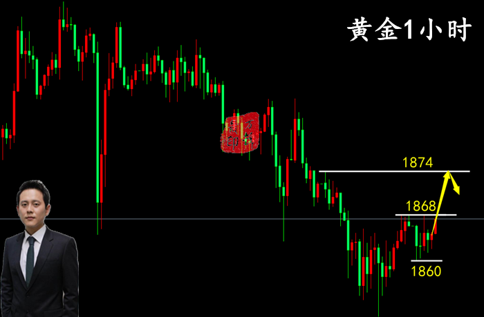 黄金昨日破底下跌,美盘震荡!而当前来说,日线已经连续下跌了4个交易日,今日周五黄金日间持续盘整,周线收官晚间黄金走势如何看待? 1、分水岭1868一线,凌晨反弹的高点,也是早间二次测试的高点,同时也是1884下跌反弹的382位置,三个重要的位置叠加,成为今日分水岭,价格突破1868一线就转震荡。 2、早间低点1860,这是多头分水岭,按照延续行情来说,做多如果跌破1860,才可以看空。 3、日间欧盘前黄金快速下探测试早见低点1860一线,始终围绕1868附近震荡,无上破,所以晚间黄金看震荡下行。 综上所述,晚间黄金看震荡下行,关注区间1868—1860,操作上高空为主,重点看早点低点1860
