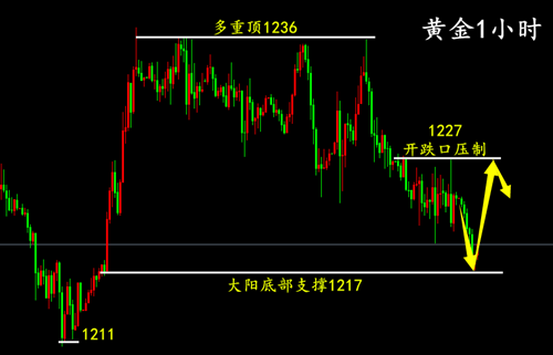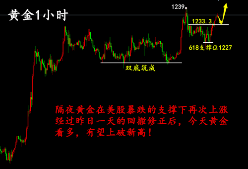每一个节气对应着每一个天气,节气不一样气候也随之发生变化,周末的时候回老家一趟,天气还是艳阳高照,路人有很多都穿着短袖,还有夏天的味道,周一天气就突然转冷,阴雨绵绵,寒气逼人,周围的朋友开始穿上了秋裤,仿佛是感受了今天立冬的到来,前两天就开始下雨为今天的立冬节气做准备,同时也意味着2018正式进入年底,金九银十已经成为过去,今年剩余的时间不多,而我们的交易时间也就更少了,且行且珍惜! 周三(11.7)黄金走势分析及操作建议! 昨日黄金日内上升,测试周五高点1236后,美盘没有延续,反而连跌破底。在日内交易中,讲过一个手法,欧盘破高,美盘看延续。那么昨日行情如何去面对。首先,一定要注意,分水岭