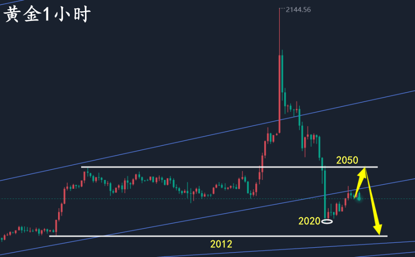 黄金可谓是冰火两重天,周末鲍威尔讲话的余威还在,周一黄金刷新历史记录,最高到达2144。 由于周六凌晨鲍威尔讲话态度温和,使得市场对美储加息见顶的预期更加确定,也加深了对明年开始降息的预期,所以买预期卖事实,黄金昨日早间开盘就表现出来了。 但是早间单阳大涨后,后续就直接开启了阴跌的局面,最低触及2020,单日跌幅高达124美金。下方所有支撑基本没有起到什么作用,直接跌破趋势线支撑。 这一次的多空转换来的很急,几乎不给一点反应的时间,日线直接大阴收盘,收长上影线,价格回踩短期均线支撑,意味着黄金阶段性见顶信号出现。 昨日的大涨大跌行情先走出来了,今日的波动可能不会太大,先看偏空调整。早间走了反