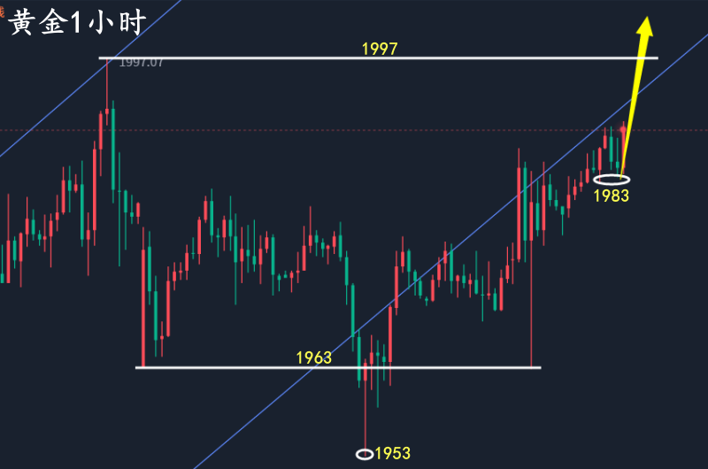 黄金本周初的这几个交易日果然和上周类似,高位横盘小幅回撤修正,印证了锦晟之前的分析。前两日连续走了探底回升的行情,虽然一度跌破支撑线,但都在凌晨迅速反弹收覆回落空间,所以周二日线收盘长十字K回踩短期均线支撑。而昨日日内横盘抗跌,美盘前冲高回落,凌晨深度探底回升,长影线下探1963一线,日线收阳整体还是多头趋势。 从近几日的黄金走势来看,强势行情有所放缓是对前期的修正,价格横盘指标快速修复,短线明显抗跌多空反复洗盘,切勿慌忙追涨杀跌,一旦修正蓄势完成还将开启新一轮上升行情,重点就看2000关口上破,所以千万不要把震荡当反转的信号。 至少目前还没有出现顶部信号和形态,真正的顶部压力触及会走快速大