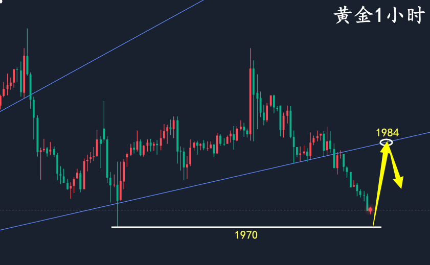 黄金昨日再度走了延续下跌,日内虽然整体波幅不大,但仍保持相对弱势行情,凌晨连阴大跌破低1953失守,低位收盘日线走了三连阴,短线相对弱势。趋势由强转弱,多头转空接连下破支撑位和分水岭,或将还有进一步下探。 近期黄金原油都走了弱势大跌,这就意味着巴以冲突暂时扩散的风险很低,春江水暖鸭先知,资本市场已经做出了反应,消息面得以短暂消退。但是黄金是否会迎来大跌我看也未必,从前期的200美金涨幅来说,目前的下跌还是比较有限,毕竟巴以冲突还在继续,尚未看到结束的曙光,美储加息临近尾声。 技术面而言大趋势大波段重点看382支撑位,也就是1933,符合日线级别百日均线和30日均线支撑共振点,无论如何在这里要