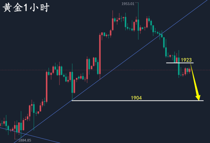 黄金自承压1950保持慢跌的节奏,单日波动幅度不大,昨日从1938—1925跌幅13美金,日线中阴收盘,也是紧跟在三十字K后单阴下跌,那么行情是转空了吗? 这两日的下跌主要还是受美指高位坚挺的影响,在之前的分析中锦晟有说过这个问题,目前来看美指虽然大阳破高,但是有加速见顶的可能,我认为延续性不强,强弩之末不要过分看多美指。虽然不会直接转弱,但是有高位回撤的需求。 所以黄金短线慢跌还不能看完全转空,在1920之上随时有反弹的可能,锦晟不建议盲目追空,特别是低位追空不可取。今日日内行情变化不大保持低位横盘,晚间谨防走反弹,围绕1920及其上方可布局多,上看1934—1938一线;至于是否空且看反