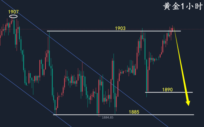 黄金昨日冲高回落加探底回升,上探1903压力,下测1890支撑,与锦晟昨日给到的分析点位完全吻合,整体走势在预期之中。日K小阳收盘形成双阳反弹,然后就又有很多人开始唱多了,锦晟不以为然。周一我们看多兑现,周二看空兑现,每日分析立足于当下只做最有效的解读,实力验证。 今日方面,早间延续反弹再次来到1903一线,首先我们需要搞清楚现在黄金趋势还是空,不要因为一涨就看多,一跌就看空,追涨杀跌只在单边行情中有利可图。趋势的改变不会一蹴而就,当前反弹只能先作为修正看待,底部的反弹力度不够形态也没有,按照之前的下跌空间来看跌幅还不够,所以现在说底还为时尚早。 美指昨日二次上探103.6一线压力大阳收盘,
