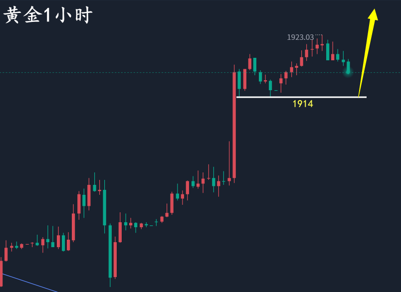 七点半,废话不多说直接进入主题,黄金日内行情波动不大,重点在晚间走势,锦晟的分析布局也就放到了美盘前,获取最新实时行情动态可通过文末方式和锦晟沟通咨询。 黄金前一日大阳上涨站上日K短期均线,但是昨日的延续性并不强,亚盘碎阳续涨小幅破高到达1923,欧盘探底回升,美盘冲高回落还是被压制在1923高点下方,日线阳十字收盘。对于当前黄金而言,整体上还没有完全转多头,前期空头趋势止跌日线三阳上升,只是短线偏多,节奏上属于震荡行情,多空转换注意把握关键节点,不要过分看多也不要过分看空,谨慎对待。 今日黄金重点关注昨日高低点两个位置:1、低点1911—1912;2、高点1923;日内整体波动有限,还是保