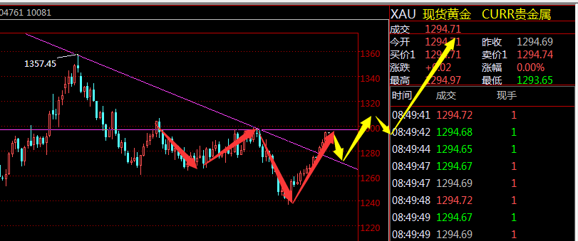 黄金周四(12月28日)继续强势上涨,虽然一度因技术性回调而失守1290关口,但随后再度拉升,美市盘中最高上探至1295美元/盎司,剑指1300大关,后市要警惕多头获利了结。 日内公布的美国初请失业金人数为24.5万,比预期的24万略高,美元指数继续走弱,处于4个月的低点,黄金因此延续涨势,美国国债收益率下跌也被认为是美元