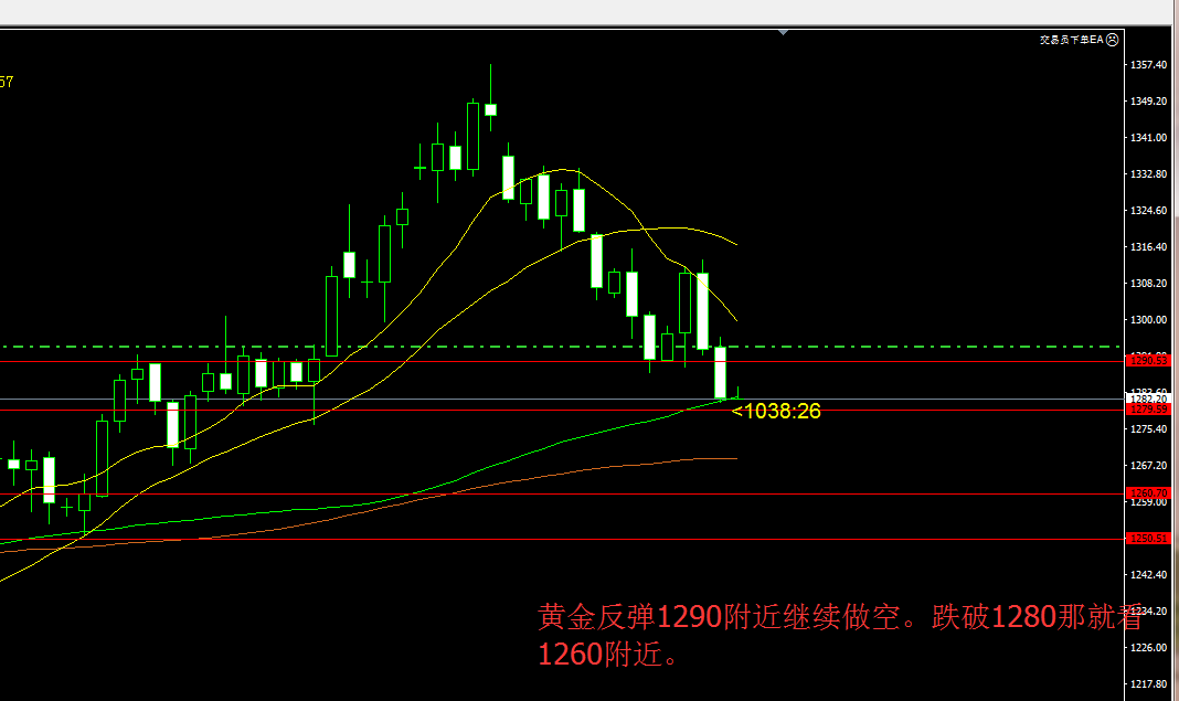 1、盘面已经形成空头,多头目前站不起来。 2、美元已经企稳,第四季度美元必涨。 3、等金子回调到1290附近空,止损5美元,目标1275. 4,做回调单子那就等在1275-1278附近做多,目标1285。 5、重点关注1282的支撑,破了大目标就是1260-1250,长时间持续。