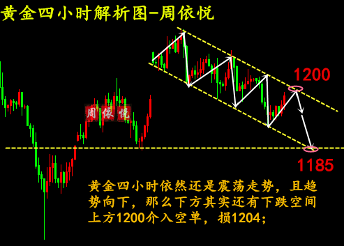进入这个市场之前一定要了解自己。明白自己的优缺点在哪里;了解这个行业、了解这个市场。很多人都是脑袋一热,觉得能赚钱,就杀进来了,这是一种不理智的行为不要被市场迷惑。市场是有两面性的,有涨就有跌。有些钱赚得容易,亏得更容易;每比交易都不要无计划状态,又完整的交易计划和风控意识,不要放任抗单敞口风险永远不要犯教条主义错误,市场不会按你想法走。市场的走势不会按照任何某个人的想法走,你怎么想的不重要,重要的是市场怎么走,市场包容消化一切。 黄金日线走一个阴阳交替的k线形态,这是典型的震荡行情,这也验证了,我们为什么说非农前黄金就是看震荡的原因。其实,四小时行情也算是配合,趋势走的一个向下通道的趋势行
