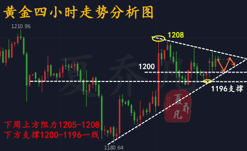 夏乔凡:9.23黄金周赚35点,下周美联储加息黄金操作建议 大家好,我是乔凡。 当前是周末假期伴随中秋小长假,月圆人团圆,在这个凉爽的秋季,乔凡希望你们阖家团圆,共度佳节。投资的过程就像一杯黑咖啡,喝起来是苦涩的,回味起来却有久久不会退去的余香。亏亏赚赚才是行情,盈亏就像坐过山车,有高峰,也有低谷,这意味着,无论眼下是好是坏,都只是暂时的。 回顾周五行情: 周五,又是黑色星期五的重演!亚欧盘慢涨,美盘开盘后金价突然跳水,跌幅超10美元,半个多小时后黄金继续下挫至10日新低,目前为止黄金最高到1211,多头刚刚展露势头就在受打压,一个黑色星期五回吐全部涨幅,周五停盘前并未站稳1200,所以下跌
