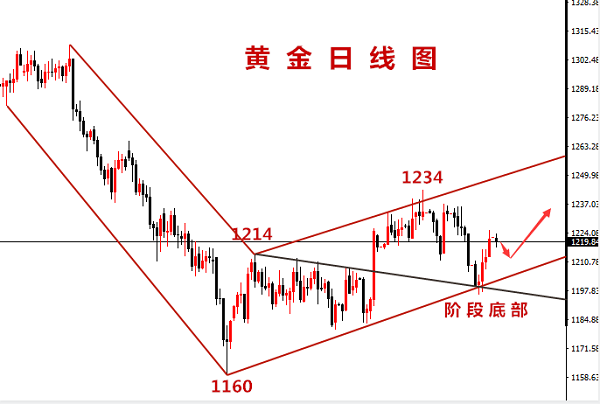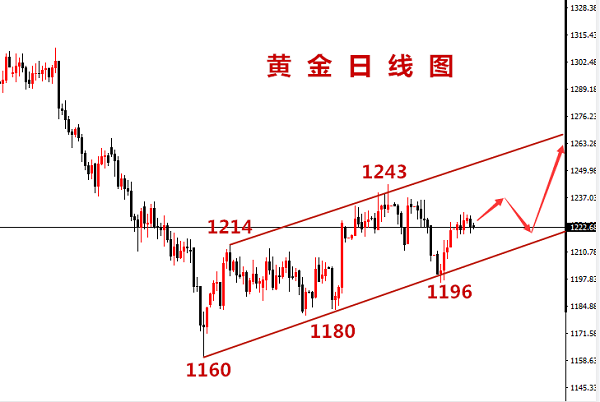 近期许多朋友找到嘉娴寻求帮助,其中多为操作不理想的。在沟通的过程中,嘉娴发现当前亏损的朋友都有一个普遍的现象,首先操作不当就改正,频繁操作就减少次数,老师实力不济就换人。有的朋友继续加金,继续亏着,继续安慰自己:一切都会好起来的,亏损总会赚回来,但是事实是一切都会越来越糟,亏损也会越来越多,最后遗憾离场。其实不论如何,嘉娴都想告诉各位投资朋友,在这个市场,无论何时,无论你的交易盈亏如何都要去学习,学基本的技术指标,学如何控制仓位风险,赚钱不易,且行且珍惜! 黄金日线连阳反弹,多头收复失地重启涨势! 上周黄金经过前一周的大跌之后,金价先是跌破新低抵达1196,随后行情开始从低位反弹回升,后面几